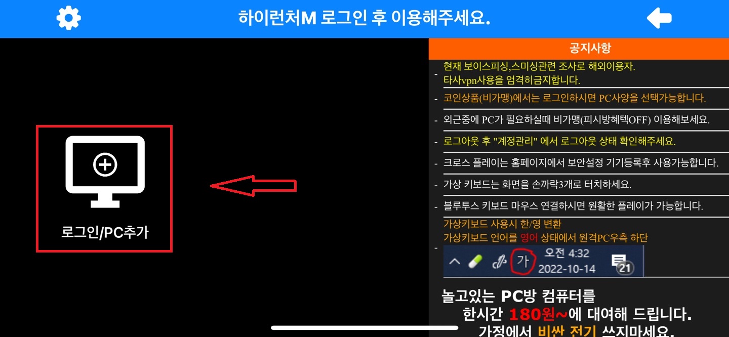 로그인 되시면 아래와 같이 PC 모양이 나옵니다. PC를 터치 해주세요.