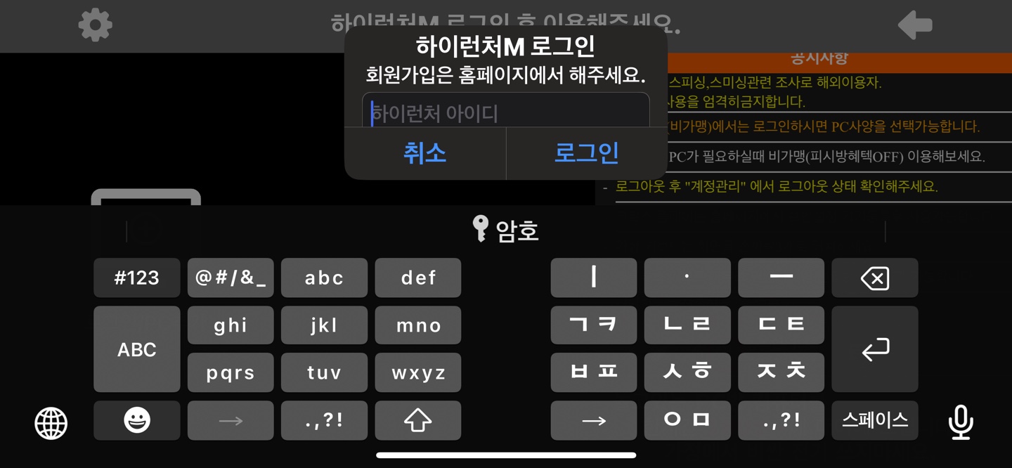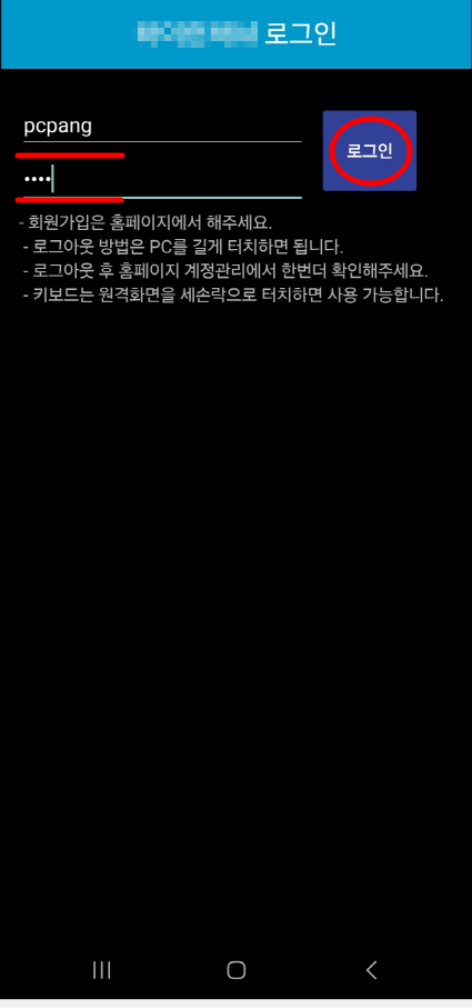 모바일에 원격을 설치하기전 먼저 아래 홈페이지 계정관리 페이지에서 회원가입후 이용하시면 됩니다.